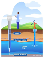 Water level indicators, electrical conductivity meters, pH meters, and leak detection instruments